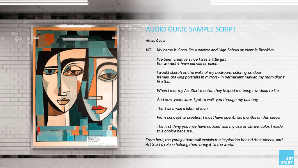 Every young artist dreams of seeing their work shared with the world. But today, when opportunities in galleries, museums, and creative fields are not equal, the odds of achieving this dream are stacked against young artists of marginalized backgrounds. Art Start has been an advocate of the arts for over 30 years. Now, we’ll lead the conversation about inclusivity in the arts nationwide—and call on our audience to advocate with us—to create a better future for the countless young artists in our programs.